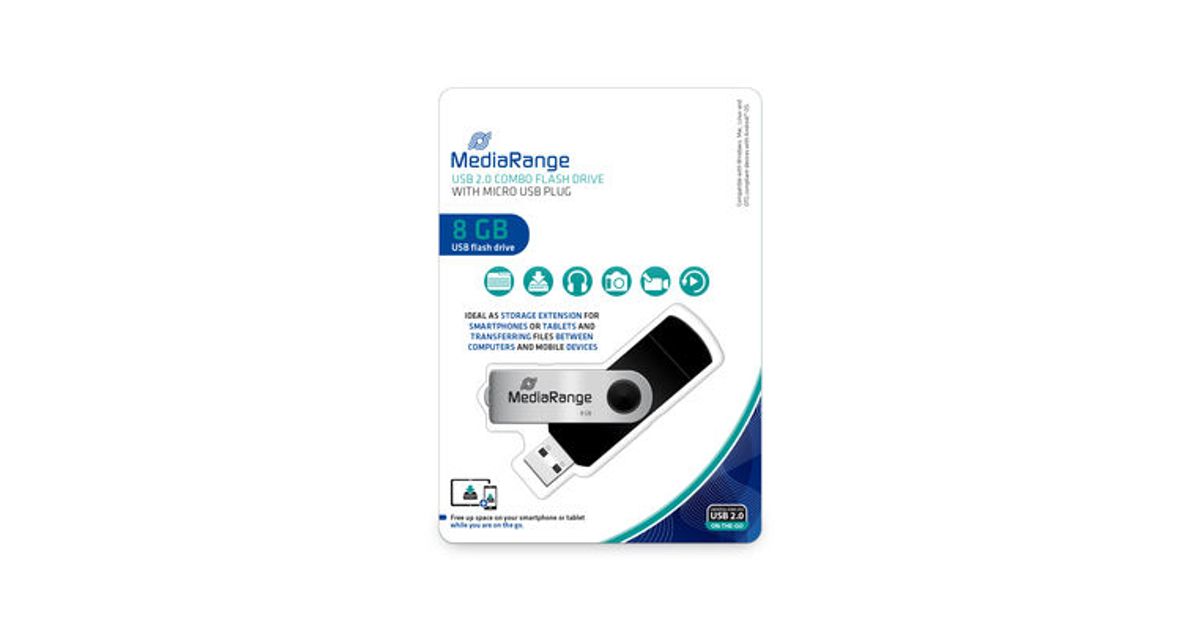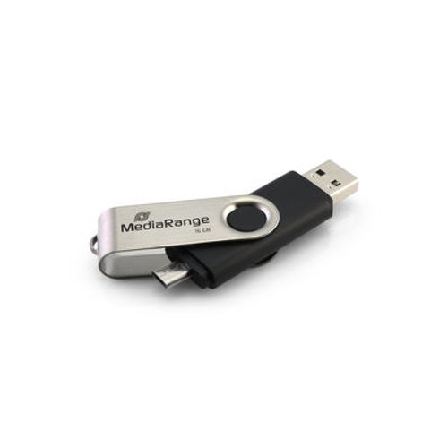 MediaRange MR930-2, 8 GB, USB Type-A / Micro-USB, 2.0, 15 MB/s, Pöörleva liigendiga, Must, Hõbe
