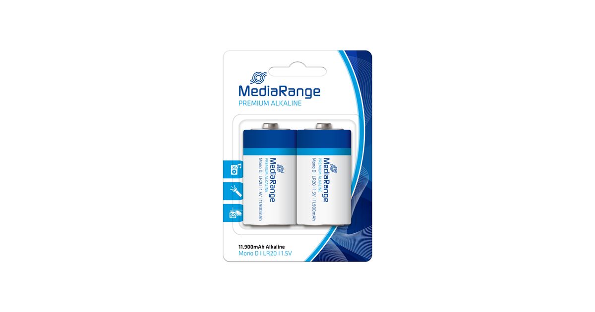 MediaRange MRBAT109, Ühekordne patarei, D, Aluseline, 1,5 V, 2 tk, 11900 mAh