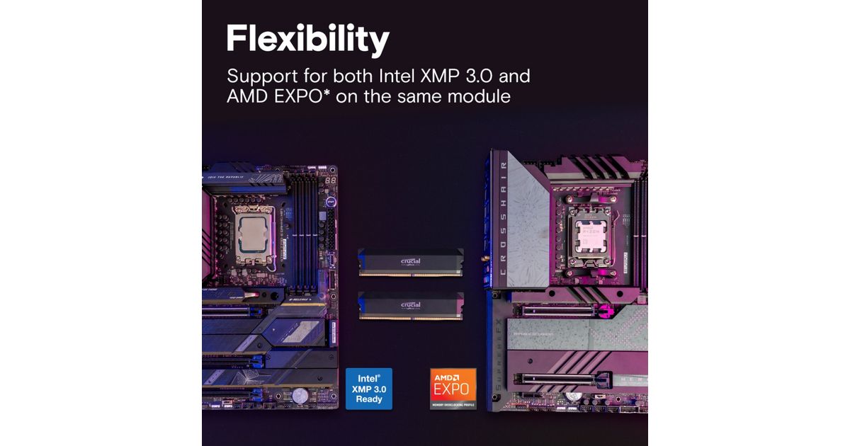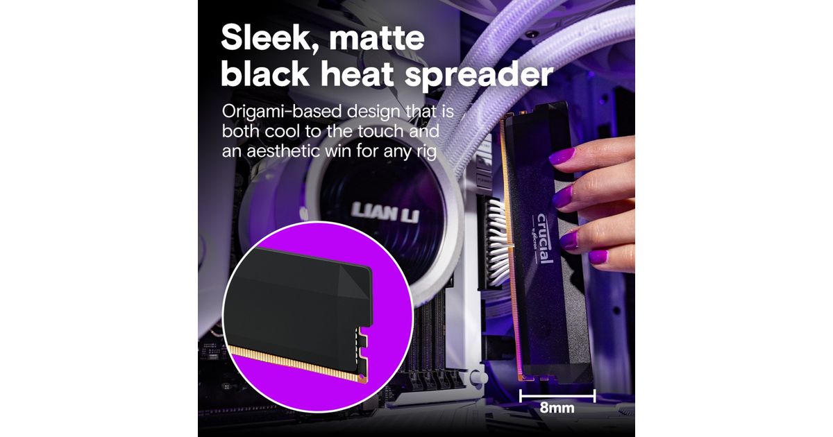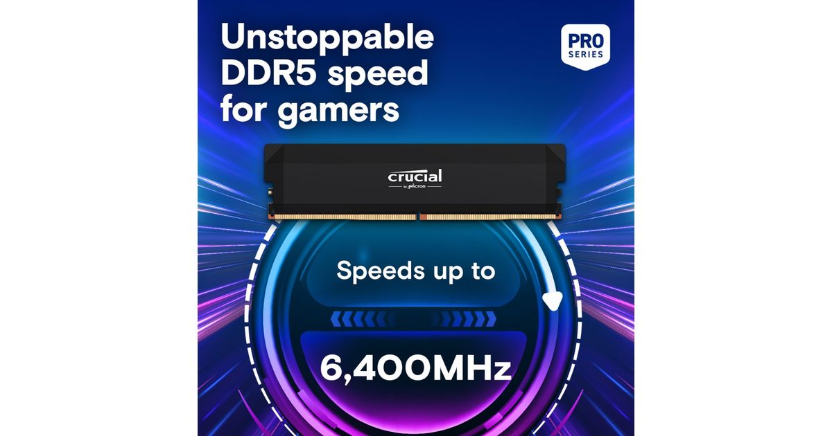 Push performance to the next level with the blazing speed and massive bandwidth of Crucial DDR5 Pro OC Gaming Memory. Mobilize the power of low latency to beat the clock and fuel your next win instead of worrying about performance bottlenecks. This powerful, high-performance memory supports next-gen multi-core CPUs and stable overclocking with Intel XMP 3.0 and AMD EXPO. Available in black or white.