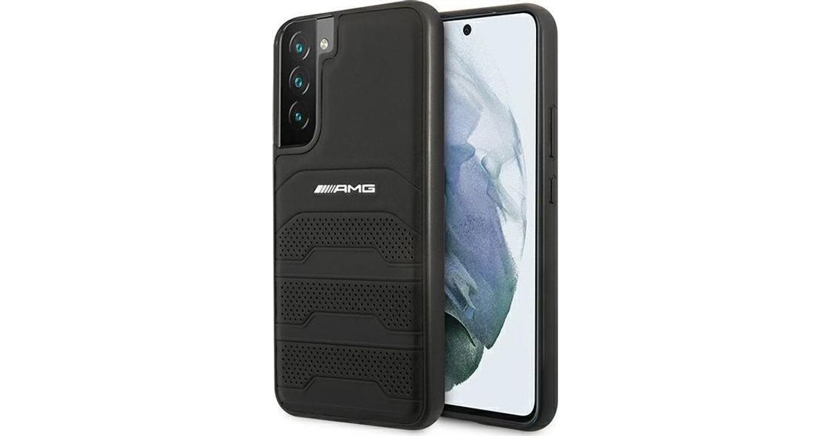 Mercedese ümbris Mercedes AMG AMHCS22MGSEBK Samsung Galaxy S22+ Plus must/must kõvaümbris, nahast reljeefsed jooned