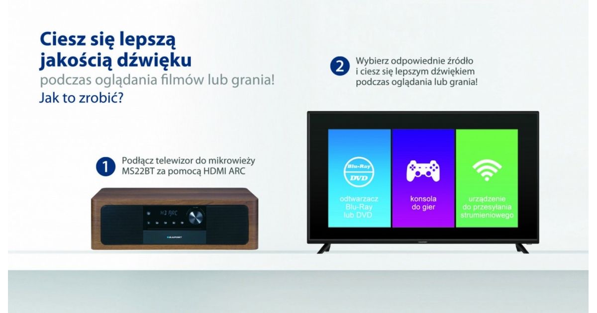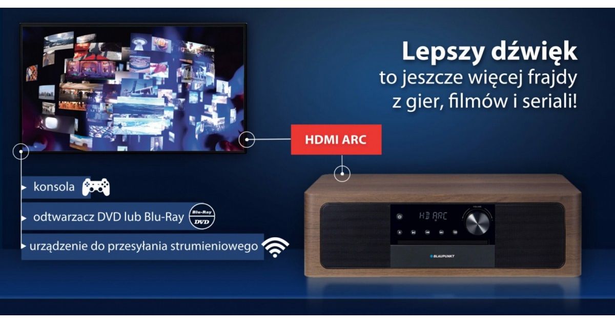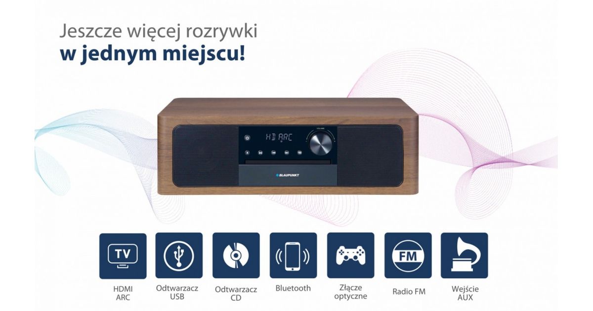 Micro system all-in-one Bluetooth, HDMI ARC, Optical CD input/MP3/USB/AUX/Clock/Alarm
