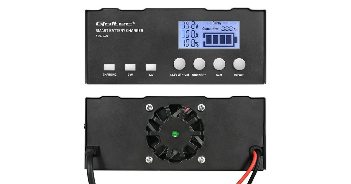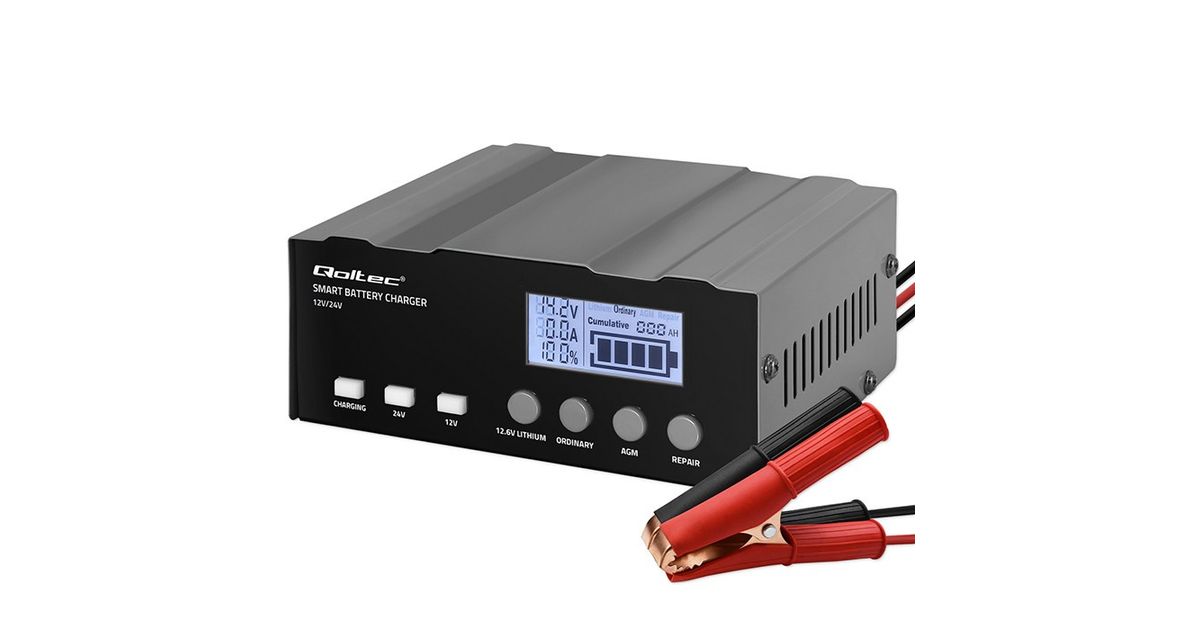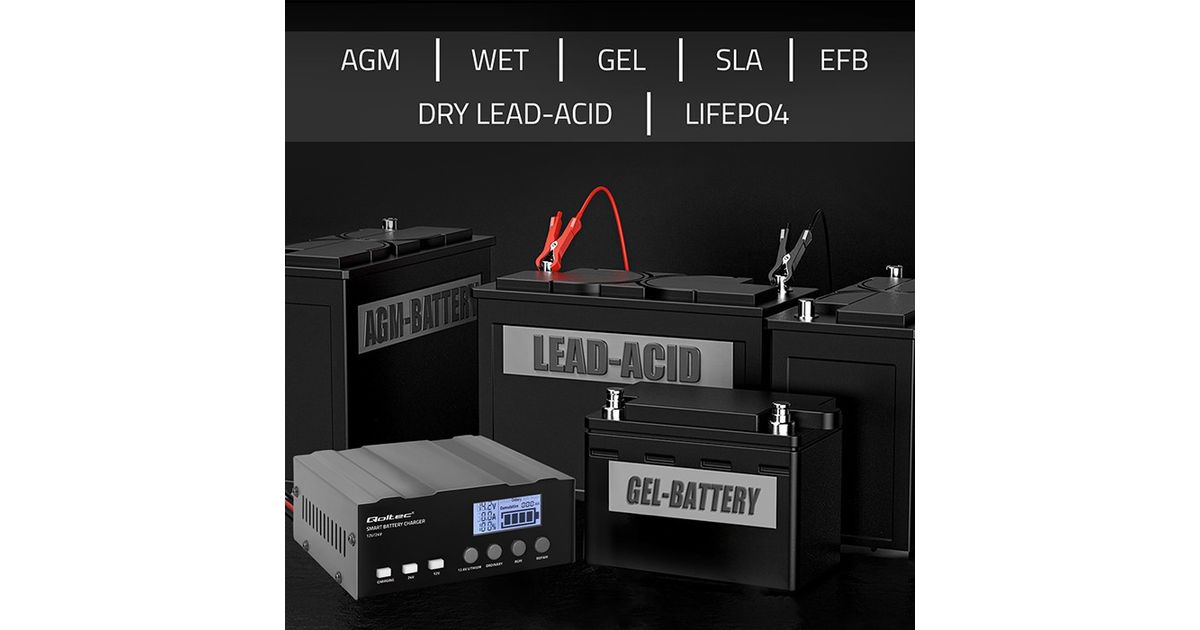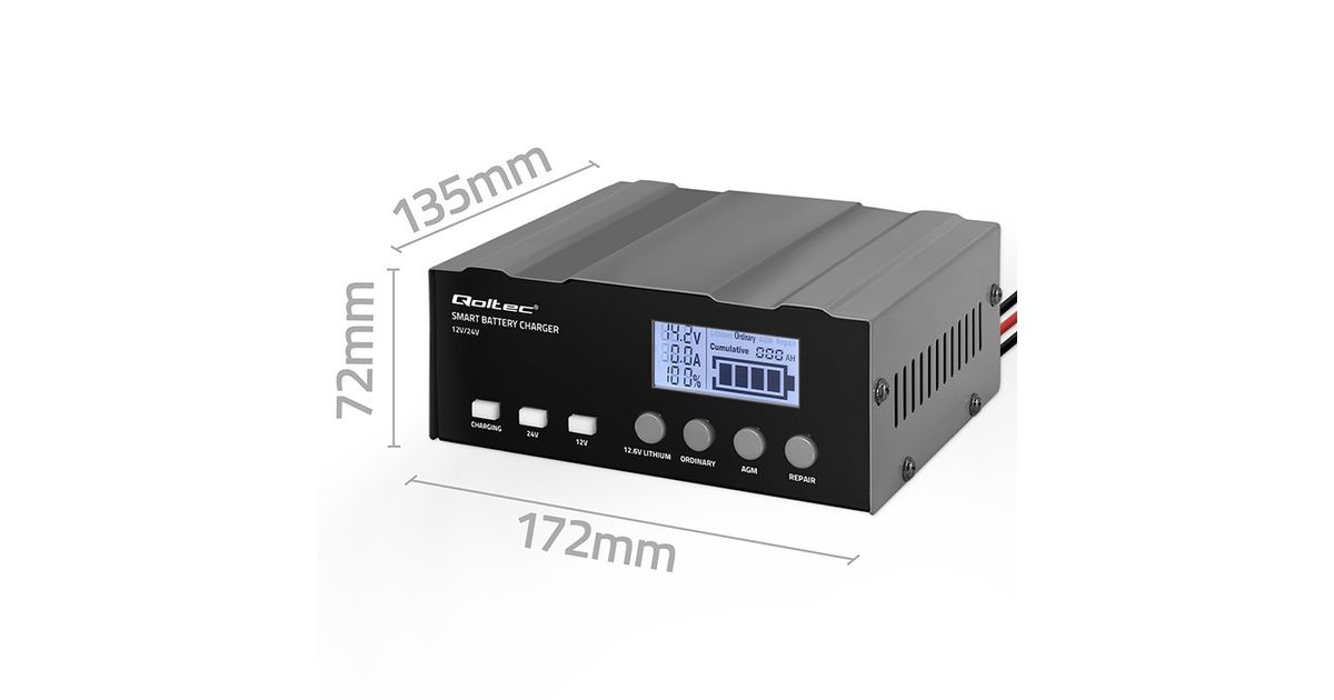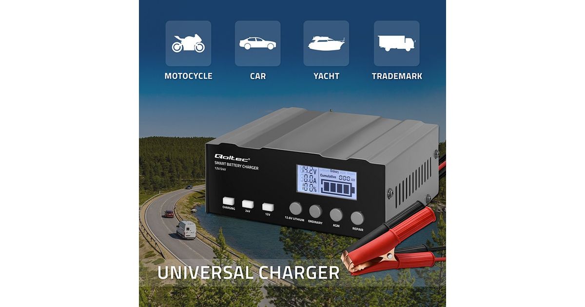 The Qoltec charger offers microprocessor precision in charging one charger is all you need for various battery types with capacities ranging from 4Ah to 105Ah. Perfect for AGM, GEL, WET, SLA, and LiFePO4 batteries. The charging time depends on the battery's discharge level and its actual capacity.