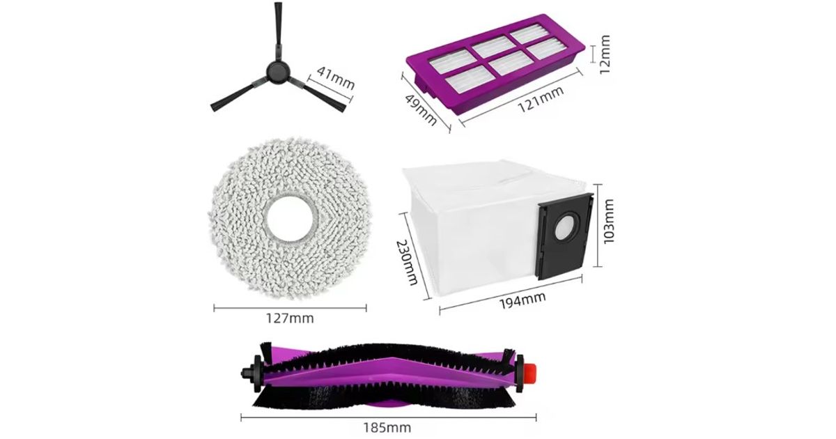 • Midea V15 Spare Parts kit: 1x Side Brush, 2x Mop Pad, 1x Roller Brush, 1x Filter, 1x Dust Bag
