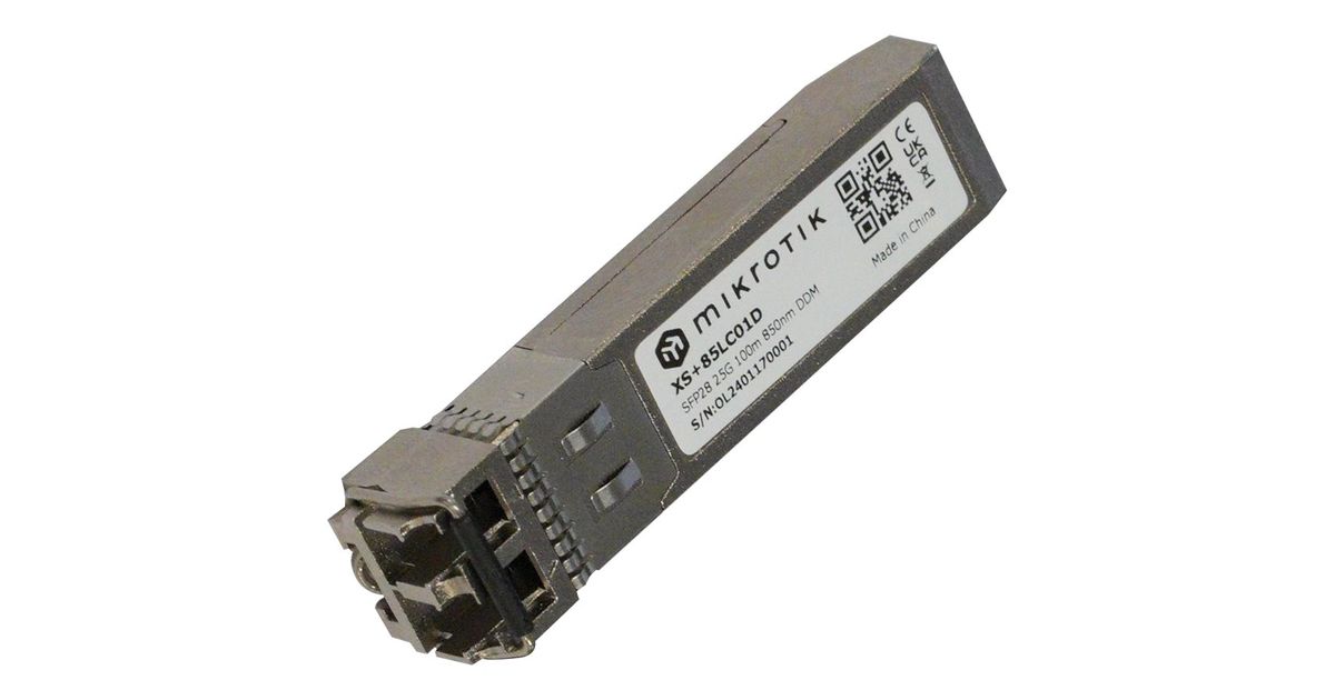 MikroTik SFP28 Module | XS+85LC01D | Dual LC UPC | 10000/25000 Mbit/s | Maximum transfer distance 100 m