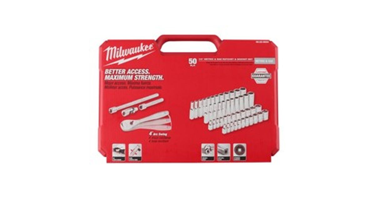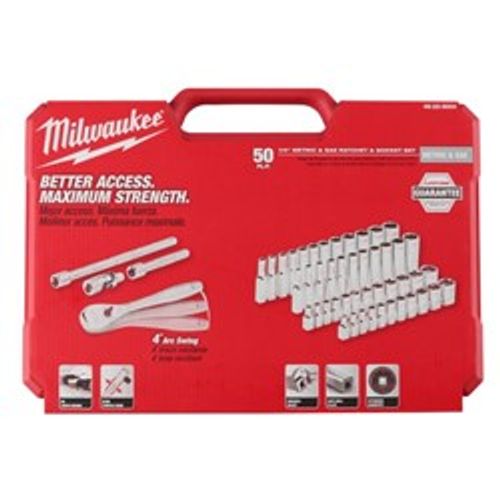 MILWAUKEE SOCKET SET 50 pcs. 1/4" WITH RATCHET - METRIC AND INCH