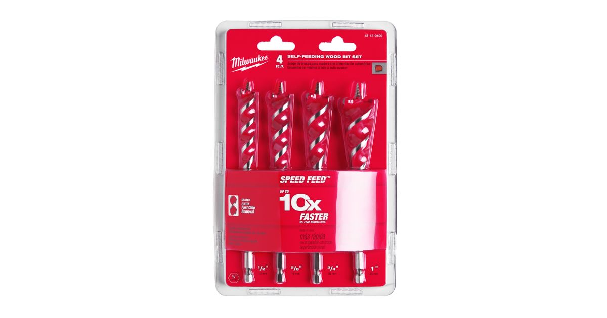MILWAUKEE SPEED WOOD AUGER KPL.4pcs 13/16/20/25* 165mm HEX 1/4". SELF-FEED SWITCHBLADE