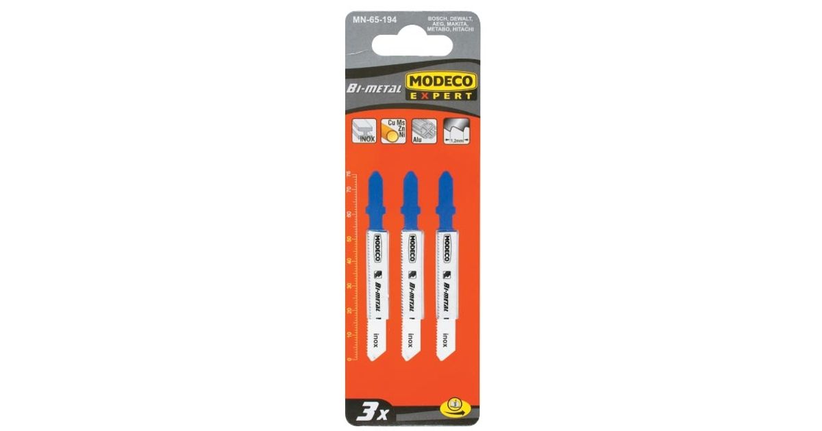 Modeco Jigsaw blades type T 76x1.2 HSS for steel straight cut 3 pcs. - MN-65-182