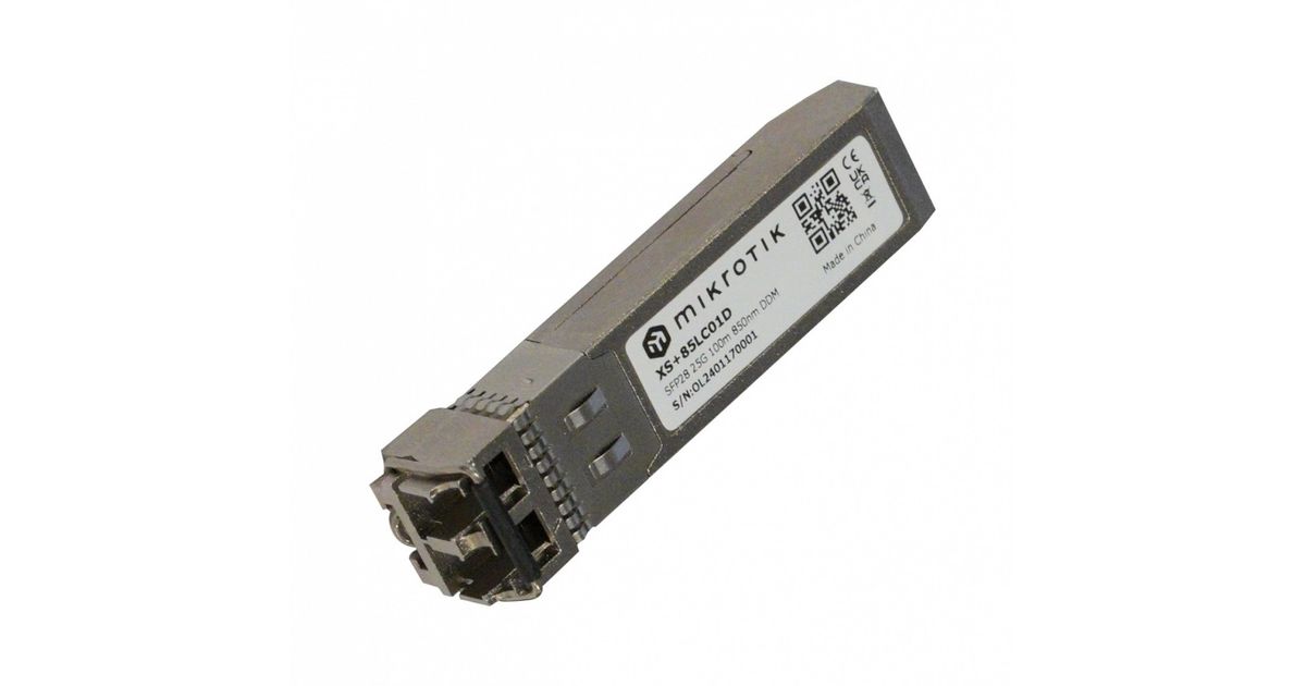 A cost-effective 1.25G SFP, 10G SFP+, and 25G SFP28 module for shorter distances: up to 100 meters in 25 Gigabit full-duplex mode. Its multi-speed compatibility and affordable price make it a versatile solution for a variety of configurations of any scaleincluding best-selling products like the RB5009, CCR2116, the netPower series, and various CRS and CSS switches.