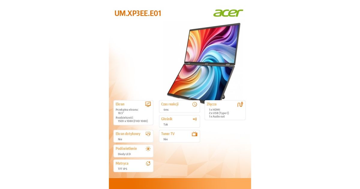 • Monitor mobilny dual IPS 19 cali PD193QEbmiuux