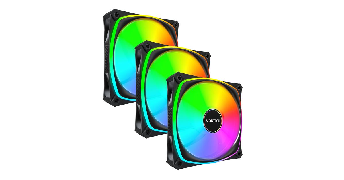 Montech RX120 PRO PWM tagurdusventilaator, ARGB - pakis 3 tk, 120 mm, must