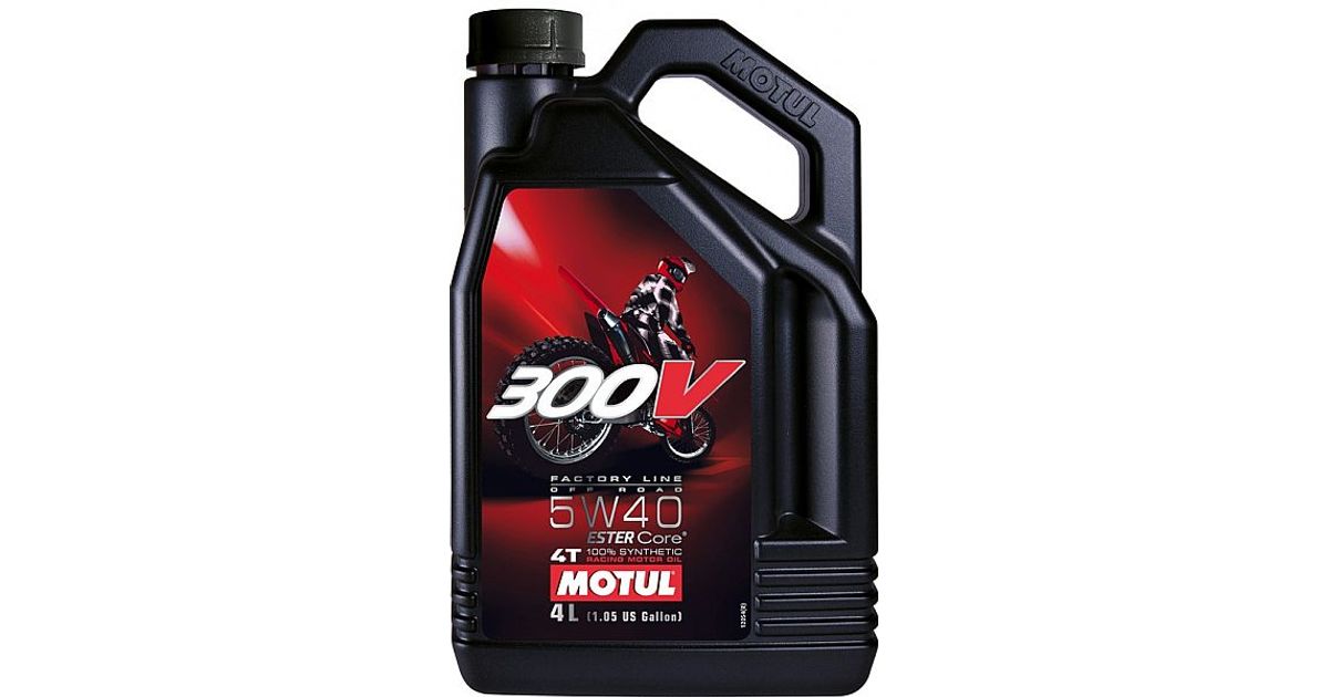 100% sünteetiline võistlusmootoriõli. Põhineb ESTER Core® tehnoloogial ja eelkõige kehtivatel mootorispordi standarditel. 300V 4T Factory Line Off Road 5W-40 on spetsiaalselt välja töötatud võistlusmootorrataste 4-taktiliste mootorite jaoks. mis töötavad suures temperatuuri- ja pööretevahemikus: mh klassi Dirt bike ja Cross MX krossirattad. MOTUL on tehnilises koostöös prestiižsemate võidusõidumeeskondadega töötanud välja ulatusliku määrdeainevaliku võistlus- ja sportmootorrataste jaoks. Eelistades estreid muudele suurepäraste omadustega sünteetilistele baasõlidele ja kombineerides neid uuenduslike manuste komplektiga. on MOTUL saavutanud ideaalse sünergia. See kõige täiuslikum estritehnoloogia võimaldab saavutada mootori maksimaalse võimsuse. tegemata järeleandmisi töökindluses ja kulumisomadustes. Selle koostis tagab kuni 2.5% suurema pöördemomendi. siduri optimeeritud hõõrdeindeksi. pikema kasutuskestuse ning parema veojõu rasketes tingimustes: liivas. lumes ja mudas. Toode pakub ka käigukasti suurepärast kaitset tänu innovatiivsele kulumisvastaste manuste komplektile ja stabiilsele õlirõhule kõikidel töötingimustel.