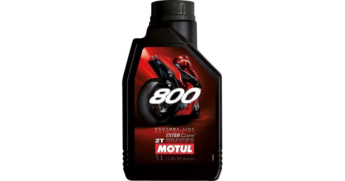 100% sünteetiline võistlusmootoriõli. Põhineb ESTER Core® tehnoloogial ja eelkõige kehtivatel mootorispordi standarditel. 800 2T Factory Line Road Racing on spetsiaalselt välja töötatud võistlusmootorratastel jaoks ning sobib kõrgetel pööretel ja suure koormusega töötingimuste korral. MOTUL on tehnilises koostöös prestiižsemate võidusõidumeeskondadega töötanud välja ulatusliku määrdeainevaliku võistlus- ja sportmootorrataste jaoks. Eelistades estreid muudele suurepäraste omadustega sünteetilistele baasõlidele ja kombineerides neid uuenduslike manuste komplektiga. on MOTUL saavutanud ideaalse sünergia. See kõige täiuslikum estritehnoloogia võimaldab saavutada mootori maksimaalse võimsuse. tegemata järeleandmisi töökindluses ja kulumisomadustes. Selle koostis pakub väga head määrimisvõimet hõõrdumise ja kulumise vähendamiseks. Seda toodet on tugevdatud emulsioonivastaste omadustega. mis väldivad karburaatori seguklapi kinnijäämist ja pakuvad ideaalset määrimist märgades tingimustes. See hoiab mootori ning väljalaskeklapid alati hästi määrituna ning ei lase kolvirõngastel ja väljalaskeklappidel kinni kiilduda. Punase värvuse tõttu on seda kütuses kerge tuvastada. Sobiv kõikide bensiinitüüpide jaoks kuni oktaaniarvuni 124.Standardid: Exceeds the requirements of API TC