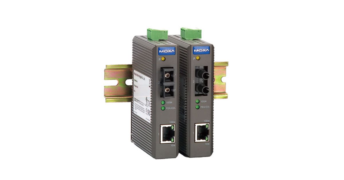 The IMC-21 industrial media converters are entry-level 10/100BaseT(X) to 100BaseFX media converters designed to provide reliable and stable operation in harsh industrial environments. The IMC-21 is a cost-effective solution that runs on either a 12 to 45 VDC power input or 18 to 30 VAC power input. The IMC-21 can operate reliably in temperatures ranging from -10 to 60°C, and the rugged hardware design ensures that your Ethernet equipment can withstand demanding industrial conditions. The IMC-21 is easy to mount on a DIN-Rail or in distribution boxes.