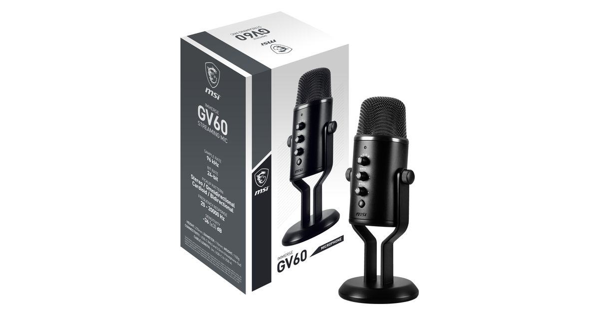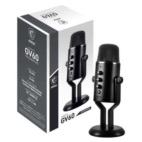 MSI IMMERSE GV60 STREAMING MIC, Mängukonsooli mikrofon, 36 dB, 20 - 20000 Hz, 2,2 Ω, 24 bitti, 96 kHz