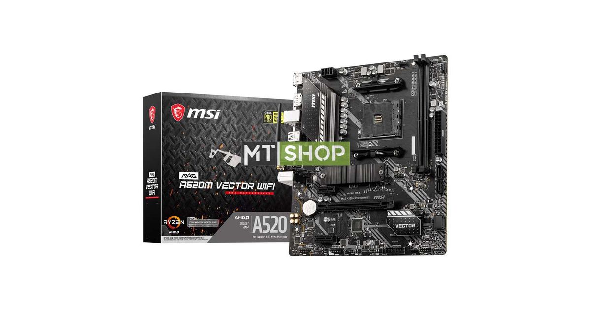 MSI MAG A520M VECTOR WIFI, AMD, Pesa AM4, 3rd Generation AMD Ryzen™ 3, 3rd Generation AMD Ryzen 5, 3rd Generation AMD Ryzen™ 7, 3rd..., DDR4-SDRAM, 64 GB, DIMM