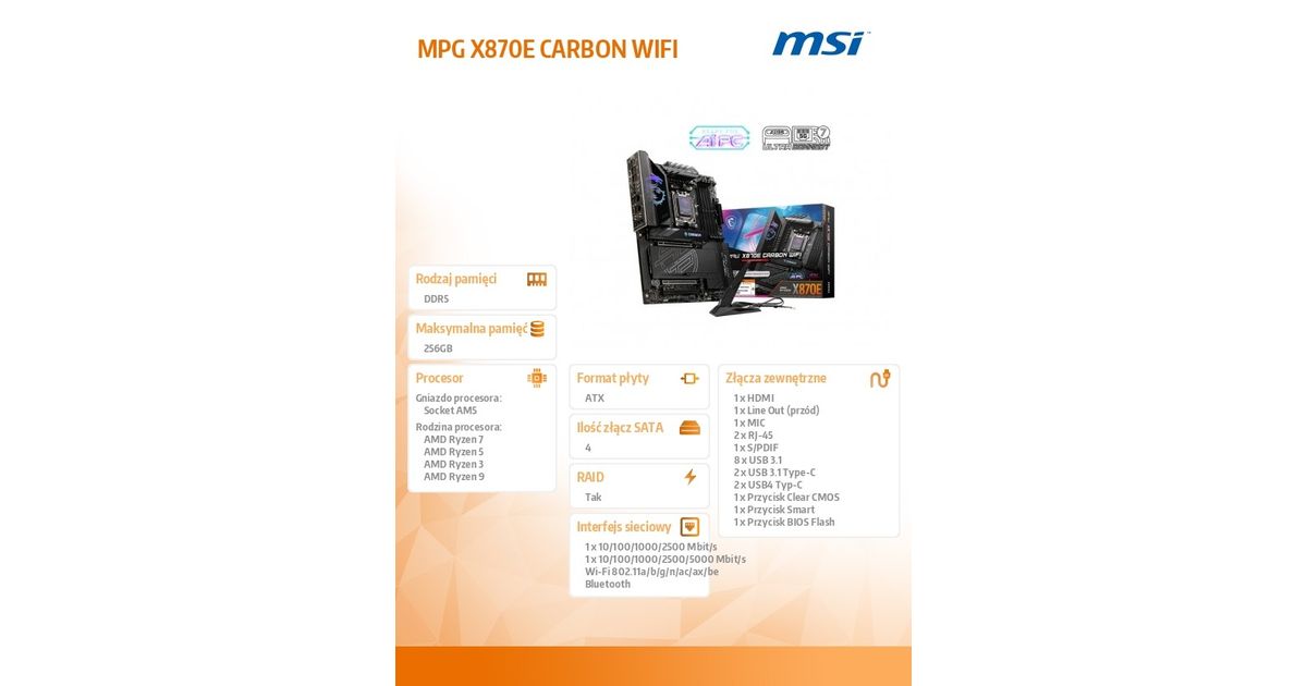 MSI MPG X870E CARBON WIFI AM5 MB