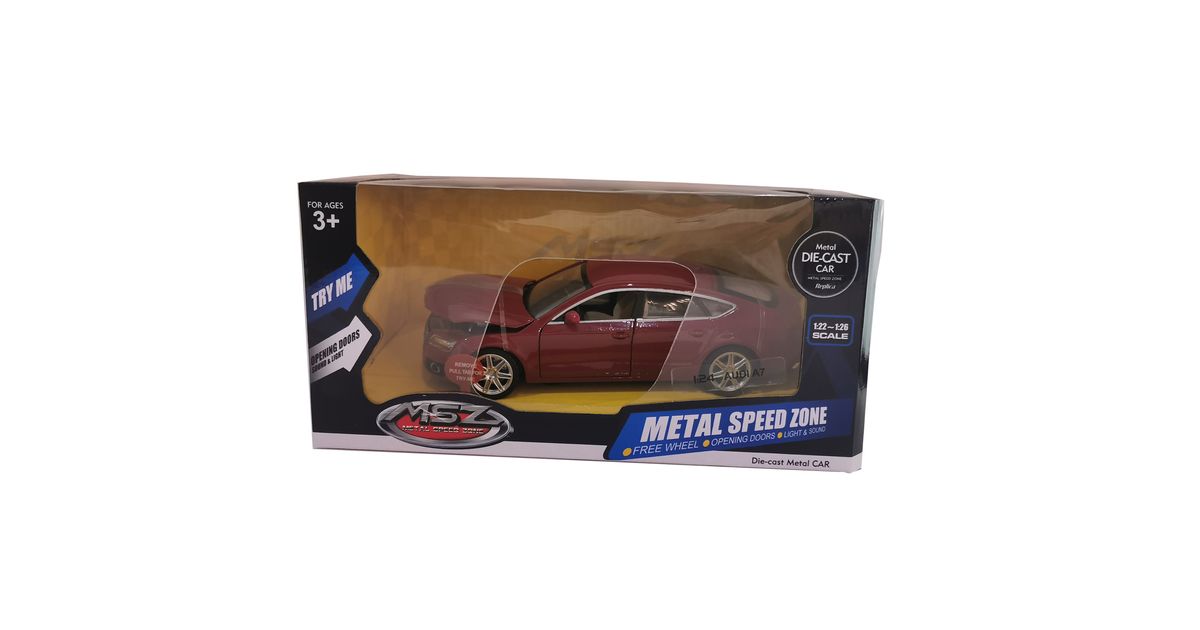 MSZ kaubagrupp keskendub kvaliteetsetele metallist automudelitele. Tehes koostööd üle 30 erineva automärgiga omab MSZ laialdast sortimenti ning valikust leiate selliseid tuntuid mudeleid nagu Lamborghini, Bentley, Audi, Porsche, Land Rover jne. Mudelid on saadaval erinevates suurustes. Konkreetne toode on Audi A7 automudel suuruses 1:24. Mudelil avanevad uksed ning kapott ning on valguse ja heliga. Saadaval erinevad toonid.