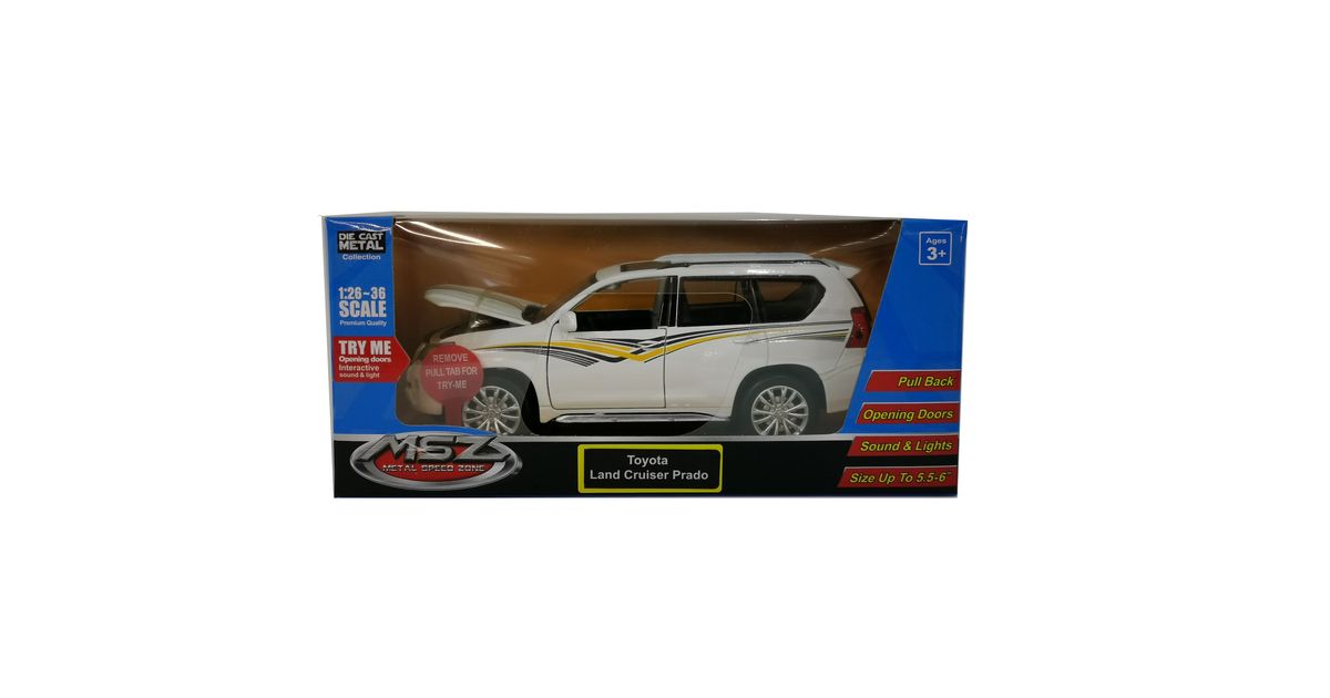 MSZ kaubagrupp keskendub kvaliteetsetele metallist automudelitele. Tehes koostööd üle 30 erineva automärgiga omab MSZ laialdast sortimenti ning valikust leiate selliseid tuntuid mudeleid nagu Lamborghini, Bentley, Audi, Porsche, Land Rover jne. Mudelid on saadaval erinevates suurustes. Konkreetne toode on Toyota Land Cruiser Prado mudel suuruses 1:32. Mudelil on tagasitõmmatav mehhanism, avanevad uksed ja kapott ning on valgus ja heli. Saadaval erinevad toonid.