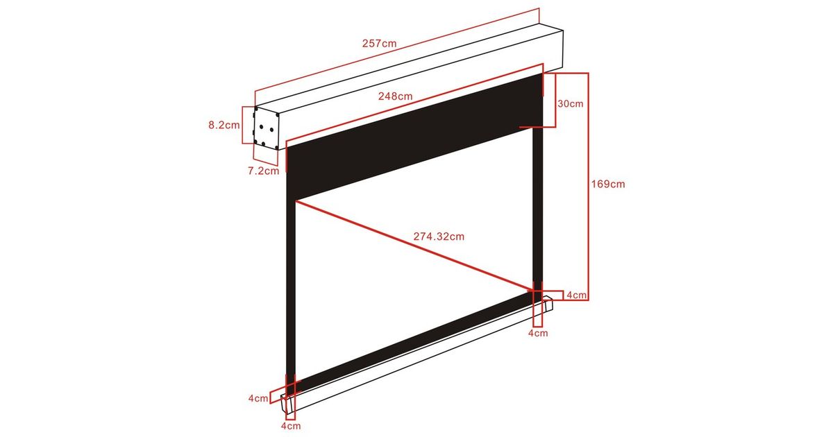 | Diagonaal | 2,74 m (108") |