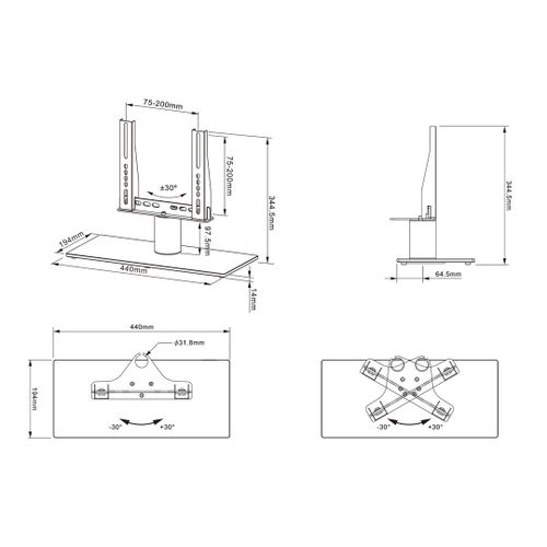 Multibrackets 3040, 61 cm (24"), 81,3 cm (32"), 100 x 100 mm, 200 x 200 mm, -30 - 30°, Must
