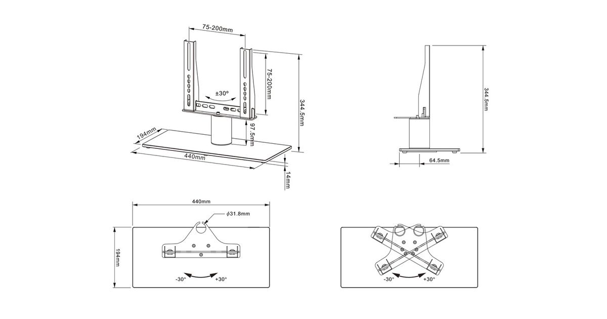 Multibrackets 3040 telerikinnitus 81,3 cm (32") Must