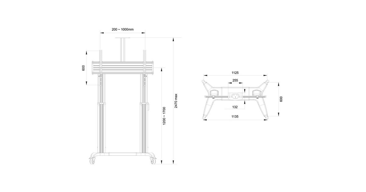 Multibrackets 3120, 165,1 cm (65"), 2,79 m (110"), 200 x 200 mm, 1000 x 600 mm, Alumiinium, Must