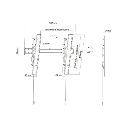 Multibrackets 5549, 101,6 cm (40"), 190,5 cm (75"), 100 x 100 mm, 600 x 400 mm, Plast, Teras, Must