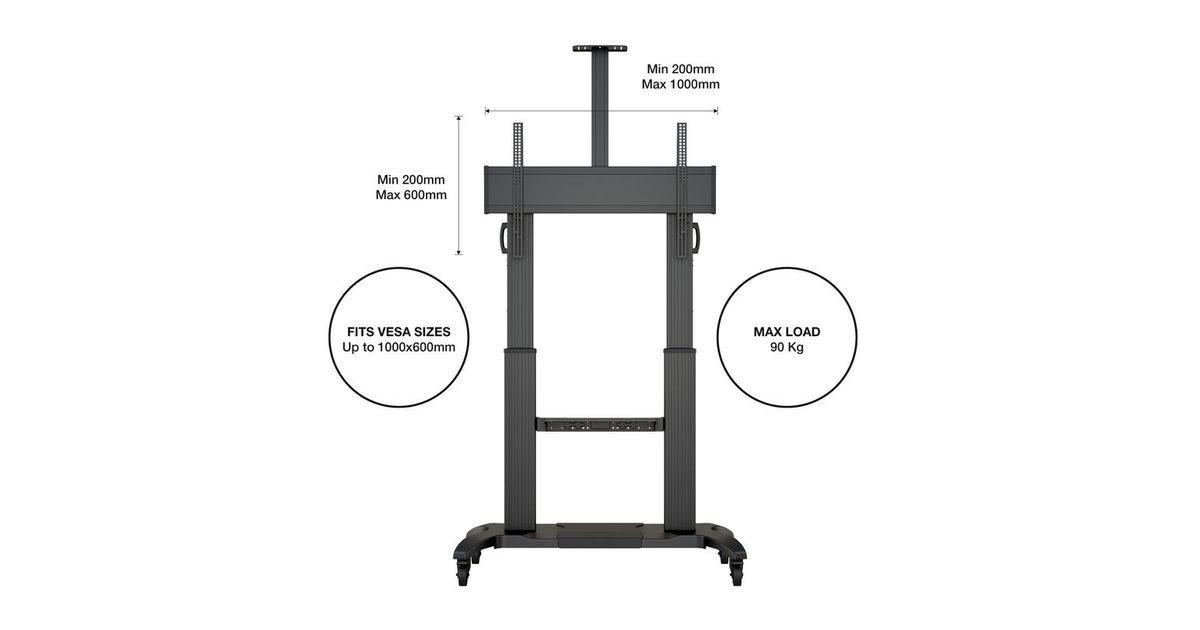 Multibrackets 6324, Must, Alumiinium, 90 kg, Põrand, 200 x 200,300 x 300,400 x 400,600 x 400,600 x 600,700 x 500,800 x 400,800 x 600,900 x 600,1000 x 600, 2,54 m (100")