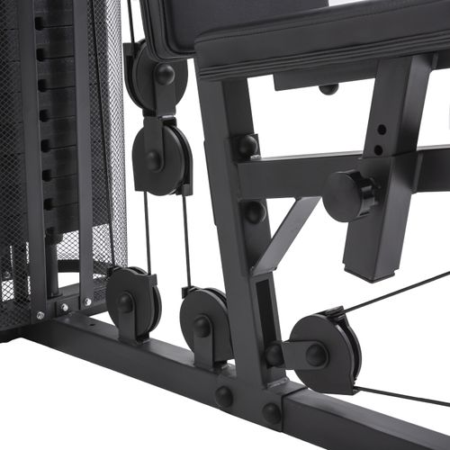 Istme kõrguse reguleerimine ning suured ja pehmed padjad võimaldavad mitmekülgset ja mugavat treeningut. Must värv ning hoolikalt disainitud polsterdus lapitud õmblustega ning fliisiga annavad masinale eriti atraktiivse välimuse - see masin lausa kutsub treenima. 60-kilone raskuskomplekt jaguneb 12ks 5-kiloseks raskuseks. 60-kilost komplekti on võimalik suurendada lisa 10kg-se komplektiga.