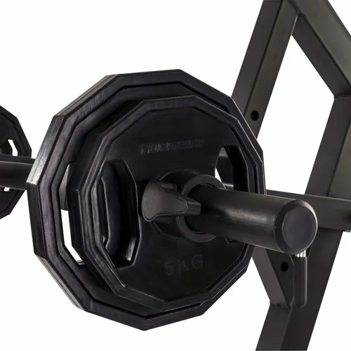 Kaaluhoiustus ja hoidikud - Kas olete treenimise lõpetanud või ei kasuta treenimise ajal koduseid raskusi? Hoidke neid raskusi kahe külje külge paigaldatud kaaluhoiustusvardatel. Nendel kaaluhoiustusvardatel on ka hoidikud, nagu kaalukangid, mida kasutate oma harjutuste jaoks. See võimaldab hoida nii 30 mm kui ka 50 mm kaalukettaid. Käepärane, kui teil on juba selliste suurustega kaalukettad olemas.