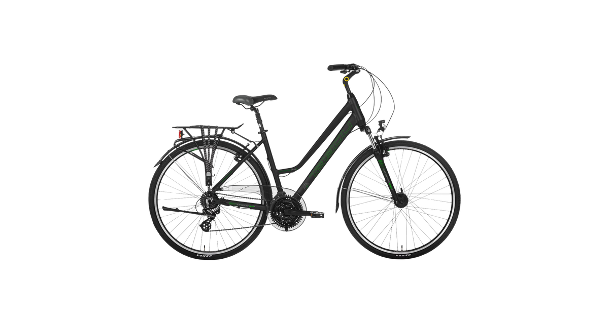 Naiste jalgratas Tabou Kinetic 2.0 PLUS. Tõelise matkaratta standarvarustusse kuuluvad laiad porilauad, pakiraam kummist kinnitusrihmade ja vedruklambriga, seisujalg. Kinetic ratastel on lisaks esi- ja tagatuled, mida toidab dünamorumm.