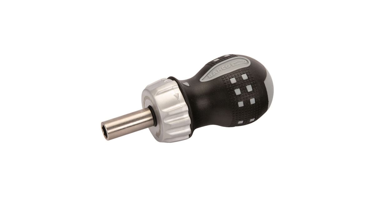 • Stubby ratcheting bit holder screwdriver for ¼” bits
