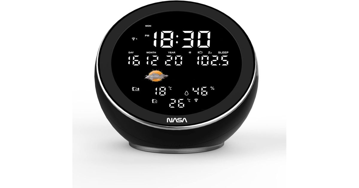 Kombineeri ilmastiku ülevaade ja muusika kuulamine NASA WSP1500 ilmajaam-kõlariga. Tänu kahele juhtmevabale väliandurile saad reaalajas jälgida ilmaolusid ja mõõta täpselt sise- ja välistemperatuuri ning välisõhuniiskust, et oma tegevusi paremini planeerida.