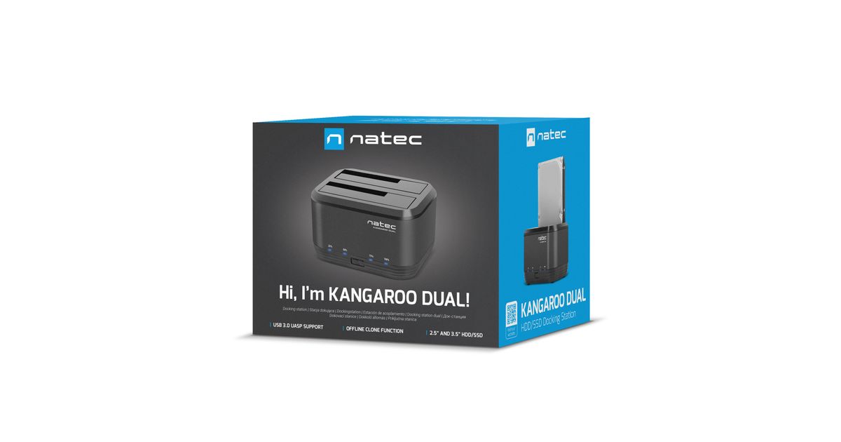 NATEC Kangaroo Dual, HDD, SSD, Jada ATA, Jada ATA II, Jada ATA III, 2.5,3.5", 8 TB, USB 3.2 Gen 1 (3.1 Gen 1) Type-A, 5 Gbit/s