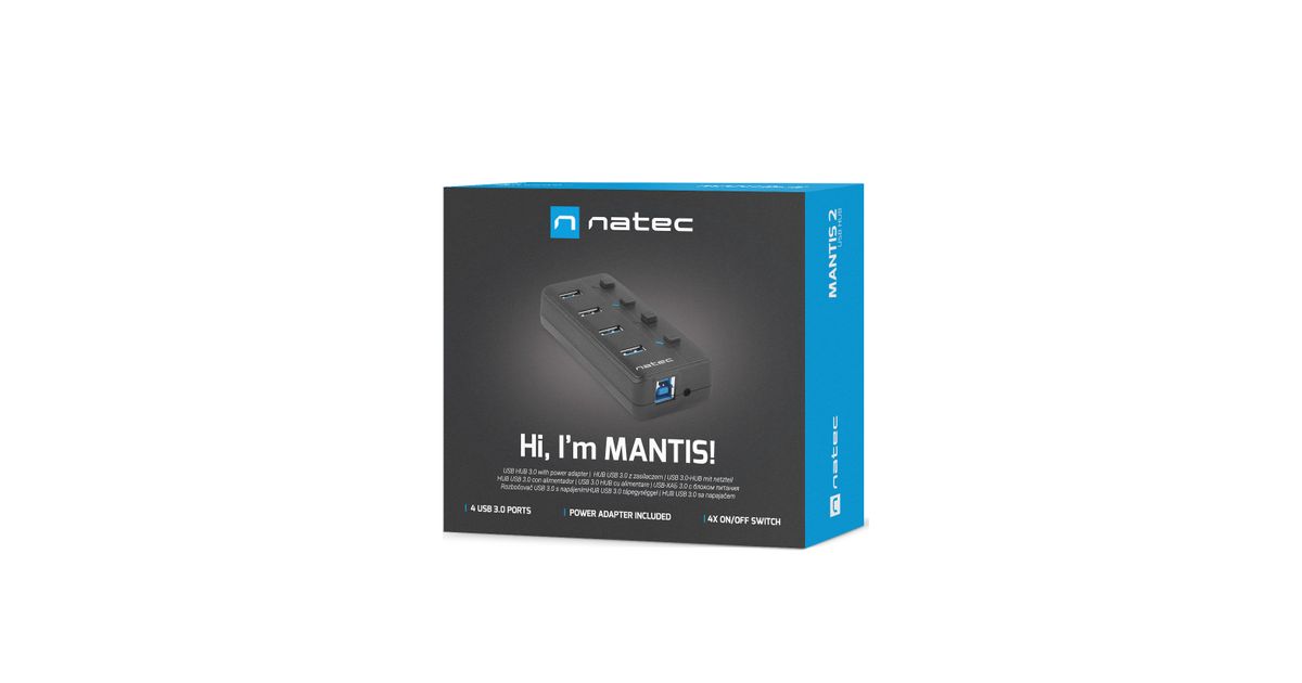 NATEC MANTIS, USB 2.0 Type-B, USB 3.2 Gen 1 (3.1 Gen 1) Type-A, 5000 Mbit/s, Must, Akrüülnitriil butadieen stüreen (ABS), USB