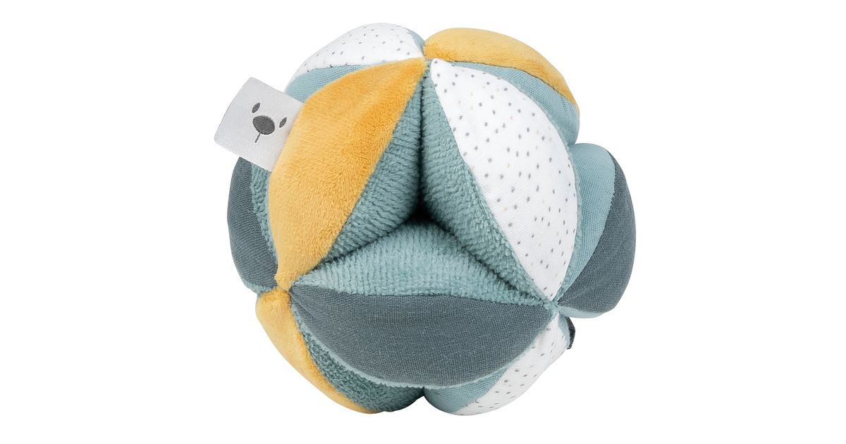 Tegevuskomplektil on neli meelelahutuslikku tegevust: kõristamine, piiksumine, paberi krõbistamine ja erinevad haaramisvõimalused mida saab avastada. Eriti pehmed materjalid ja erinevad tekstuurid stimuleerivad puutetunde arengut ja kutsuvad avastama. Lihtsalt haaratavad elemendid teevad sellest armsast pallist ideaalse kaaslase beebidele ja vastsündinutele. Masinpesu 30°. 100% polüester.