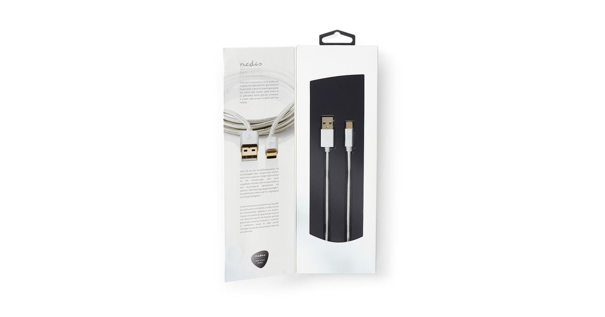 Nedis CCTB61600AL10, 1 m, USB A, USB C, USB 3.2 Gen 1 (3.1 Gen 1), 5000 Mbit/s, Alumiinium
