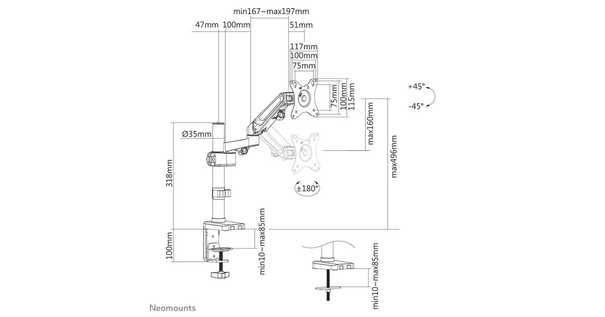Neomounts by Newstar DS70-750BL1, Klamber/läbiv polt, 7 kg, 43,2 cm (17"), 68,6 cm (27"), 100 x 100 mm, Must