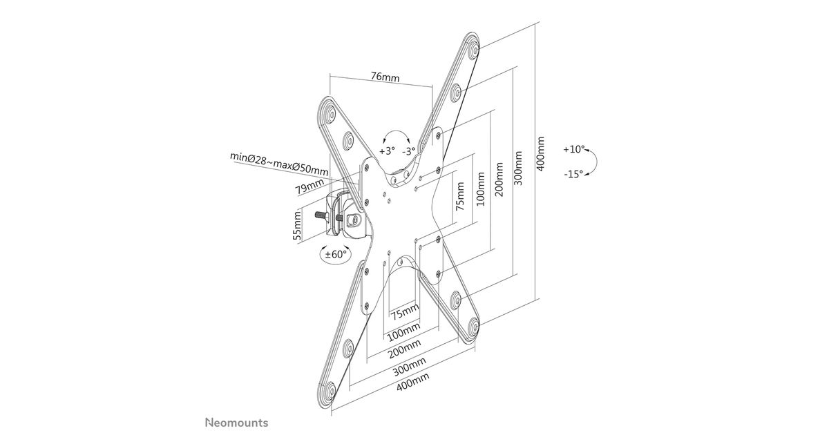 Neomounts by Newstar FL40-430BL14, 81,3 cm (32"), 139,7 cm (55"), 75 x 75 mm, 400 x 400 mm, 15 - 10°, Must