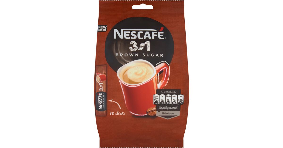 Nestle Nescaf 3in1 Brown Sugar Lahustuv kohvijook 165 g (10 x 16,5 g) - Kohvi - Kohvimasinad ja kohvi - Väike köögitehnika - Kodutehnika - MT Shop