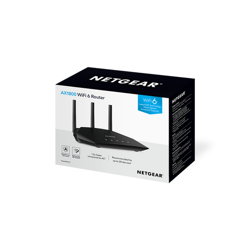 Netgear RAX10, Wi-Fi 6 (802.11ax), Kaks sagedusala (2,4 GHz / 5 GHz), Ethernet LAN, Must, Laua peale asetatav ruuter