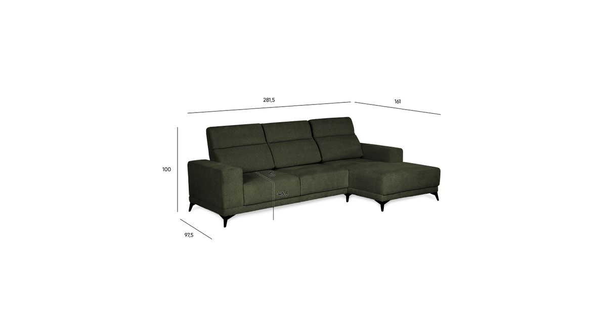 Nurgadiivan DARLA PN 281,5x97,5/161xH104cm, tumeroheline - Diivanid - Elutuba - Mööbel - Kodu - MT Shop
