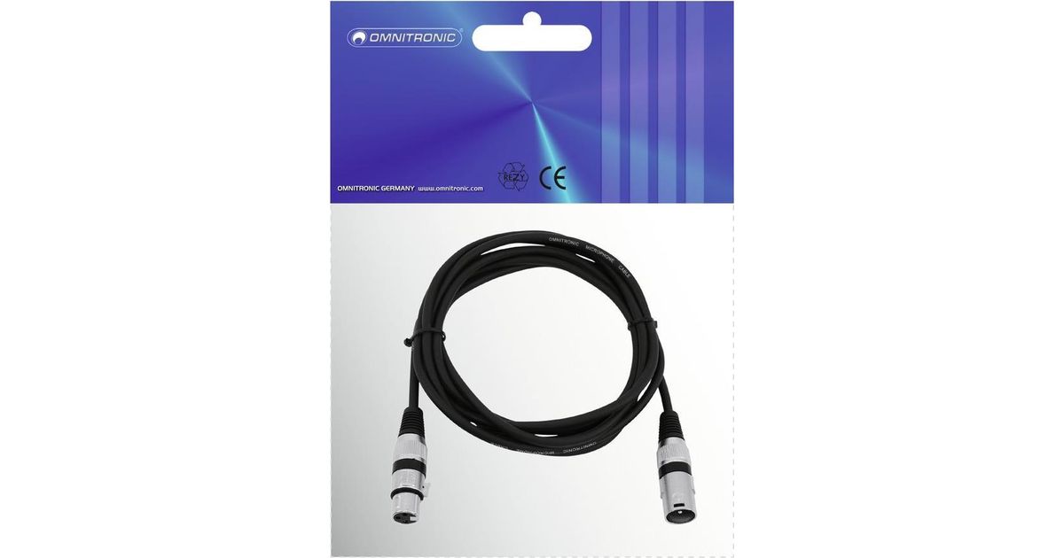 Omnitronic 3022045N XLR Verbindungskabel [1x XLR-Stecker 3 polig - 1x XLR-Buchse 3 polig] 1.50 m Schwarz (3022045N)