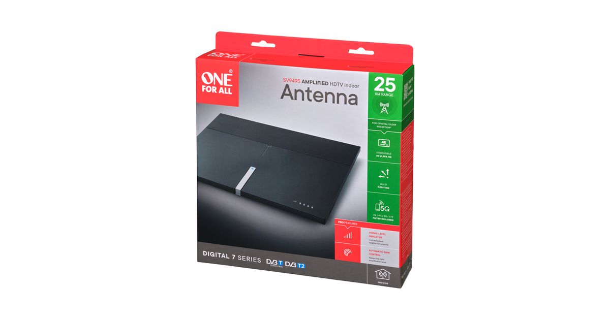 One For All Premium Line SV 9495, Hoonesisene, Must, DVB-T, DVB-T2, UHF, VHF, 25000 m, Võimsus