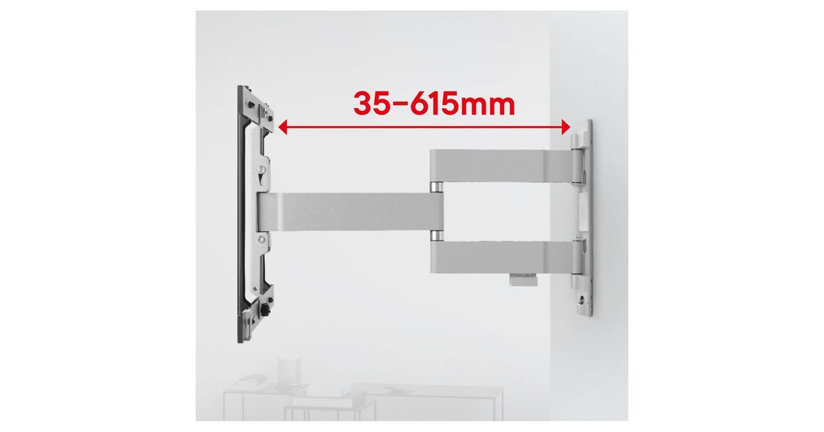 The two-arm technology makes this mount the ideal solution for mounting your TV in a corner or watching TV from an adjacent room.