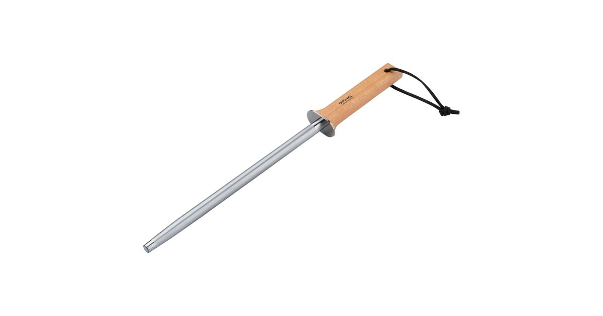 The sharpening steel from the French knife manufacturer Opinel is the ideal sharpening tool and should not be missing from any knife collection. The steel rod has a diamond particle coating and a diameter of 13 mm. The hard material ensures good abrasion even with little force, top-quality sharpening results and a long service life. Beech wood was used as the handle material, and with its beautiful grain, the honing steel lies well and securely in the hand. The metal fitting at the transition from the lacquered handle to the sharpening rod also protects against injuries, and the leather cord can also be used to attach the sharpening steel to a hook for storage.