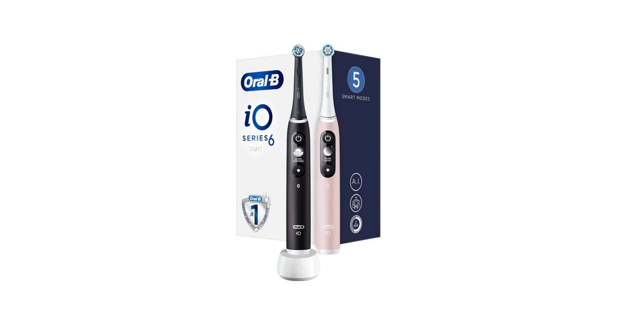 Oral-B iO6 DuoPack Electric Toothbrush, Black + Pink