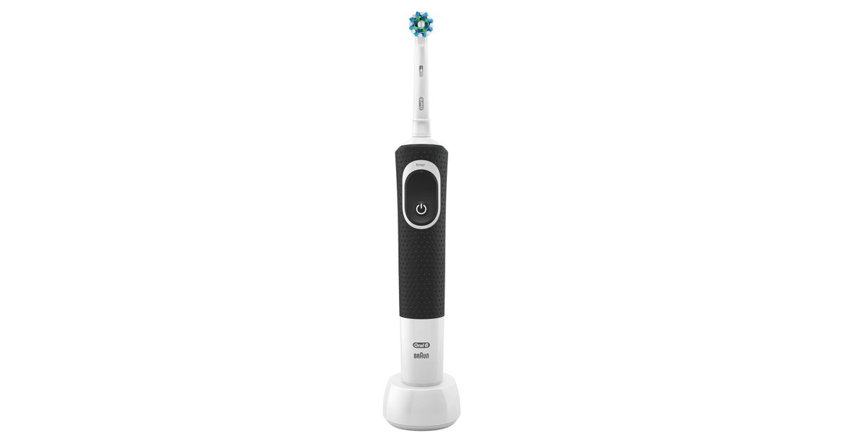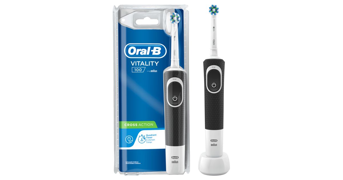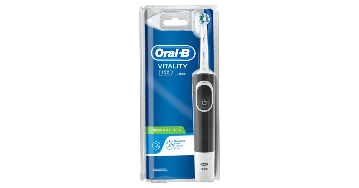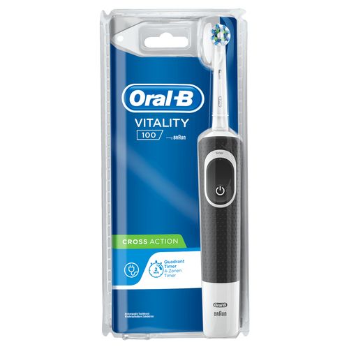Oral-B Vitality 100 CrossAction, Täiskasvanud, Pöörlev/võnkuv hambahari, Must, Valge, 7600 liigutust minutis, 4 x 30 sec, Saksamaa