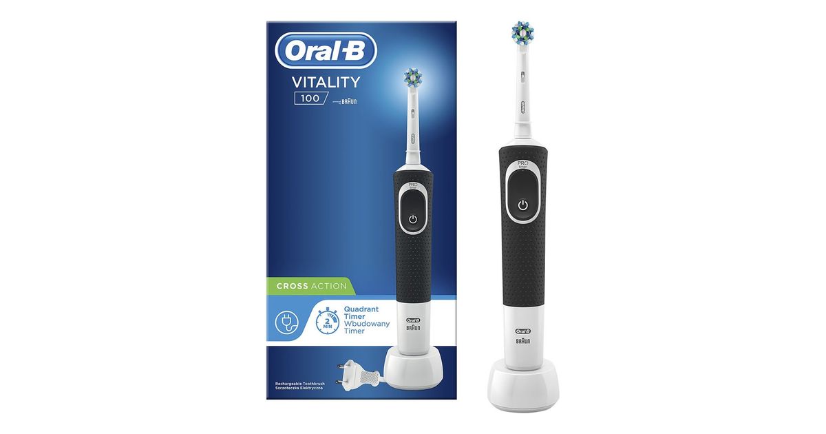 Oral-B Vitality 100 CrossAction, Täiskasvanud, Pöörlev/võnkuv hambahari, Must, Valge, 2 min, Patarei, Sisseehitatud aku