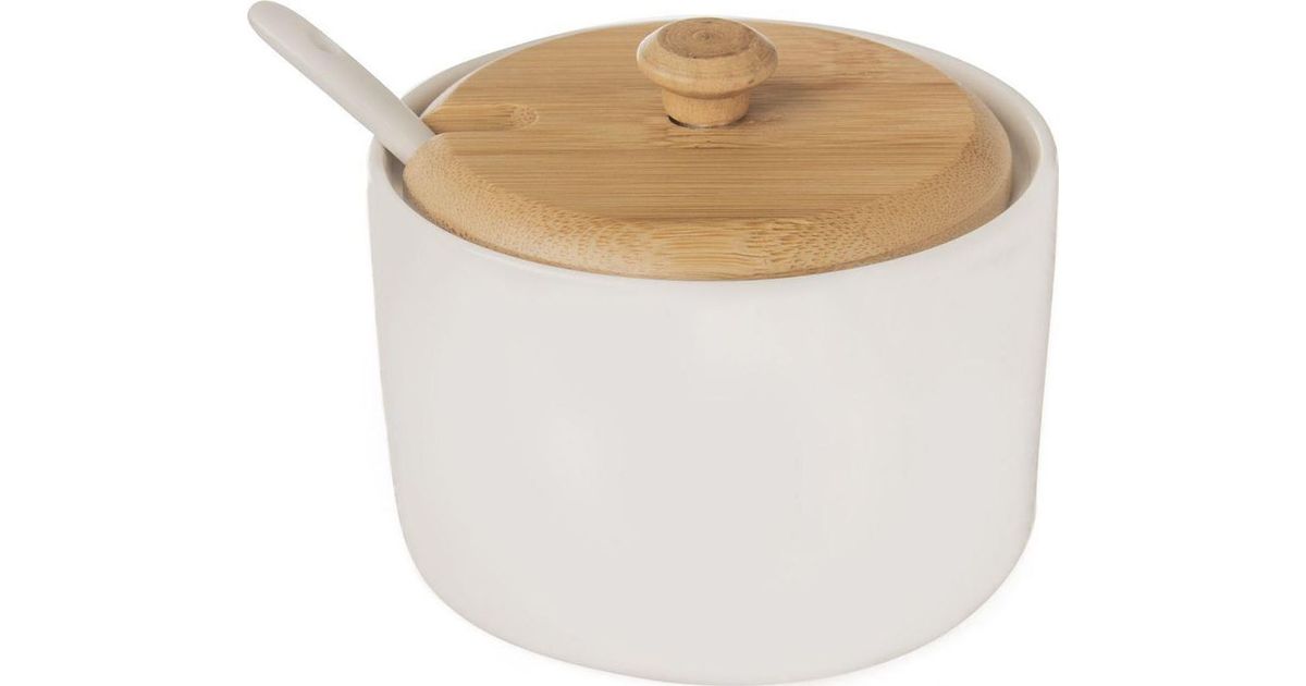 Orion Confectionery bowl, porcelain, bamboo, white, with lid, spoon, sugar bowl, sugar container